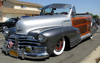This made me stop and stare, it's so cool and So-Cal. A '50 convertible Woody Fleetline Chevrolet